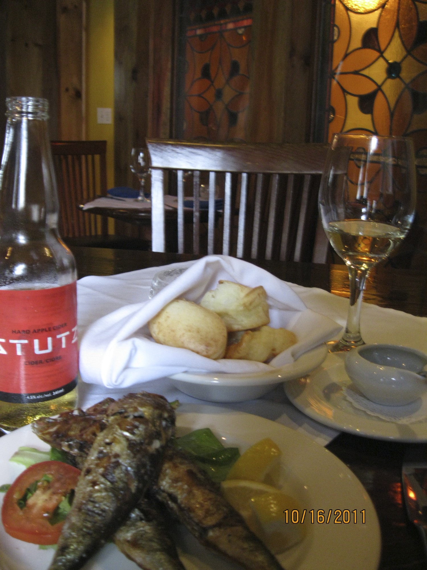 Then it was time for lunch. On Argyle Street I found Pipa, a nice, homey restaurant offering Brazilian and Portuguese cuisine. My meal of grilled sardines was fresh and just as nourishing as I expected. Finishing off with the warm, chewy cassava and cheese rolls (Pao de Queijo), and a bottle of Stutz, a Nova Scotia hard cider, I would soon declare myself satiated. It was a meal made more memorable by the warm attention from the amiable lady owner, and by the touches of quaint art pieces and architectural details in the décor.
